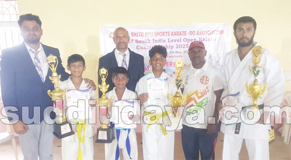 ಬೆಳ್ತಂಗಡಿ: ತಮಿಳುನಾಡಿನ ಊಟಿಯ ಶ್ರೀನಿವಾಸ ಪೆರುಮಲ್ ಕಲ್ಯಾಣಮಂಟಪದಲ್ಲಿ ನಡೆದ ರಾಷ್ಟ್ರಮಟ್ಟದ ಕರಾಟೆ ಪಂದ್ಯಾವಳಿಯಲ್ಲಿ ಕರಾಟೆ ಶಿಕ್ಷಕ ಶಿಹಾನ್ ಅಬ್ದುಲ್ ರಹ್ಮಾನ್ ಅವರ ಶಿಷ್ಯಂದಿರು ಹಲವು ಪದಕಗಳನ್ನು ಗಳಿಸಿದ್ದಾರೆ.