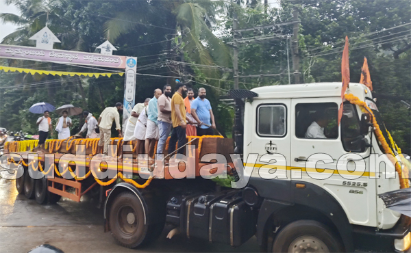ಮಚ್ಚಿನ: ಇತಿಹಾಸ ಪ್ರಸಿದ್ಧ ಬಳ್ಳಮಂಜ ಮಹತೋಭಾರ ಶ್ರೀ ಅನಂತೇಶ್ವರ ಸ್ವಾಮಿ ದೇವಸ್ಥಾನದ ಜೀರ್ಣೋದ್ಧಾರದ ಕೆಲಸವು ನಡೆಯುತ್ತಿದ್ದು ಇದರ ಧ್ವಜಸ್ತಂಭದ ವೃಕ್ಷ ಮುಹೂರ್ತವು ಇತೀಚೆಗೆ ನಡೆದಿದ್ದು. ತಣ್ಣೀರುಪಂತ ಗ್ರಾಮದ ಅಲಕ್ಕೆ ಬೈಲಿನ ಕುಟುಂಬಸ್ಥರು ದಾನವಾಗಿ ನೀಡಿದ ಕೊಡಿ ಮರದ ಮೆರವಣಿಗೆ ಮೇ. 30ರಂದು ಬ್ರಹ್ಮಶ್ರೀ ಡಾ. ದೇರೆಬೈಲ್ ಶಿವಪ್ರಸಾದ್ ತಂತ್ರಿಗಳ ಮಾರ್ಗದರ್ಶನದಂತೆ ಕೊಡಿ ಮರದ ಭವ್ಯ ಮೆರವಣಿಗೆ ಅಲಕ್ಕೆಯಿಂದ ಬಳ್ಳಮಂಜಕ್ಕೆ ಆಗಮಿಸಿತು.