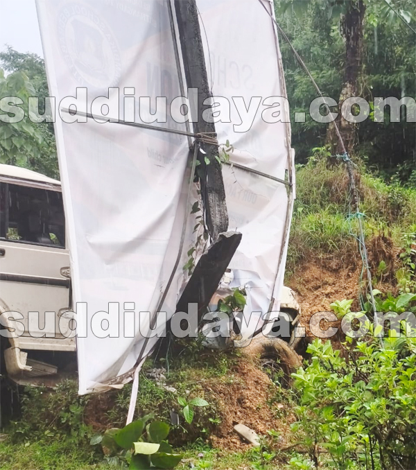 ಬಂಗಾಡಿ ಕಡೆಯಿಂದ ಬೆಳ್ತಂಗಡಿ ಕಡೆಗೆ ಬರುತ್ತಿದ್ದ ಬೊಲೆರೋ ವಾಹನವು ನಿಯಂತ್ರಣ ತಪ್ಪಿ ವಿದ್ಯುತ್ ಕಂಬಕ್ಕೆ ಡಿಕ್ಕಿ ಹೊಡೆದಿದ್ದು, ವಿದ್ಯುತ್ ಕಂಬಕ್ಕೆ ಹಾನಿಯುಂಟಾಗಿದೆ. ವಾಹನದಲ್ಲಿದ್ದ ಇಬ್ಬರು ಸಣ್ಣಪುಟ್ಟ ಗಾಯದೊಂದಿಗೆ ಪ್ರಾಣಾಪಾಯದಿಂದ ಪಾರಾಗಿದ್ದಾರೆ. ವಾಹನವು ಸಂಪೂರ್ಣ ನಜ್ಜುಗುಜ್ಜಾಗಿದೆ.