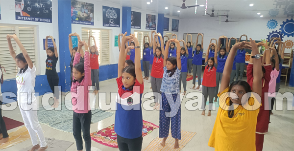 ಸುಮಾರು 6000 ವರ್ಷಗಳ ಇತಿಹಾಸವಿರುವ ಯೋಗದ ಮಹತ್ವವನ್ನು ಜಗತ್ತಿಗೆ ಪರಿಚಯಿಸಿದವರು ಭಾರತೀಯರು. ದೇಹ ಮನಸ್ಸು ಮತ್ತು ಆಧ್ಯಾತ್ಮಿಕತೆಗಳನ್ನು ಕೂಡಿಸುವ ಏಕ ಮಾರ್ಗವೇ ಯೋಗ. ಯೋಗದ ಮೂಲಕ ಉತ್ತಮ ಆರೋಗ್ಯವನ್ನು ಕಾಪಾಡಿಕೊಳ್ಳಬಹುದು. ಯೋಗದ ಹಲವು ಆಸನಗಳನ್ನು ಮಾಡುವ ಮೂಲಕ ಮಕ್ಕಳಲ್ಲಿ ಯೋಗದ ಮಹತ್ವವನ್ನು ಪರಿಚಯಿಸಲಾಯಿತು.