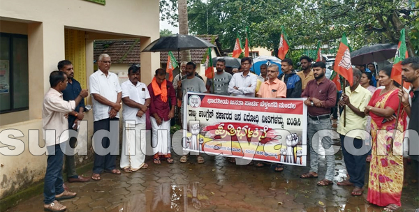 ಮಂಡಲ ಪ್ರಭಾರಿ ಗಣೇಶ್ ಅರಸಿನಮಕ್ಕಿ ಮಾತನಾಡಿ ಜನ ವಿರೋಧಿ ರಾಜ್ಯ ಕಾಂಗ್ರೆಸ್ ಸರಕಾರದ ನಡೆಯಿಂದ ಜನರ ಅನೇಕ ಸಮಸ್ಯೆಗಳನ್ನು ಸರಿಪಡಿಸಲು ಅಗ್ರಹಿಸಿ ಪ್ರತಿಭಟನೆಯಲ್ಲಿ ಮುಂದಿಟ್ಟರು.