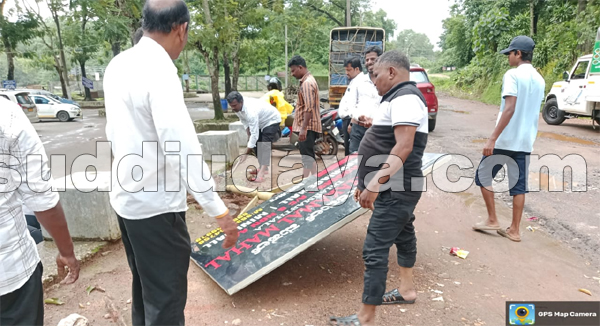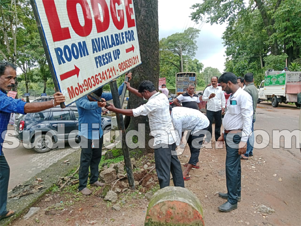 ಧರ್ಮಸ್ಥಳ : ಗ್ರಾಮ ಪಂಚಾಯತಿ ವ್ಯಾಪ್ತಿಯ ರಾಷ್ಟ್ರೀಯ ಹೆದ್ದಾರಿ ರಾಜ್ಯ ಹೆದ್ದಾರಿ ಗ್ರಾಮ ಪಂಚಾಯಿತಿ ರಸ್ತೆಗಳ ಬದಿಗಳಲ್ಲಿ ಅನಧಿಕೃತವಾಗಿ ಹಾಕಿರುವ ಬ್ಯಾನರ್, ಬಂಟಿಂಗ್ಸ್ ಜಾಹೀರಾತು ಫಲಕ, ಇತರ ನಾಮ ಫಲಕಗಳನ್ನು ಧರ್ಮಸ್ಥಳ ಗ್ರಾಮ ಪಂಚಾಯತು ಅಭಿವೃದ್ಧಿ ಅಧಿಕಾರಿ ದಿನೇಶ್ ಎಂ. ರವರು ತೆರವುಗೊಳಿಸಿದರು.