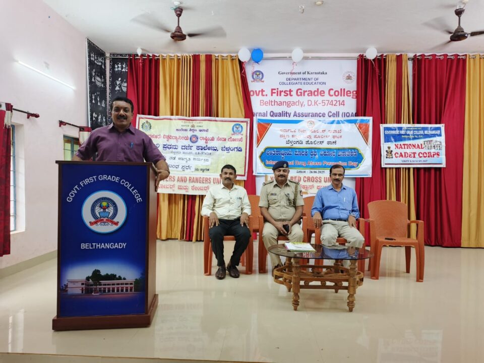 ಮಾದಕ ವಸ್ತುಗಳ ಸೇವನೆಯಿಂದ ಆಗುವ ದುಷ್ಪರಿಣಾಮಗಳ ಬಗ್ಗೆ ಕಾಲೇಜಿನ ವಿದ್ಯಾರ್ಥಿಗಳಲ್ಲಿ ಕಾರ್ಯಕ್ರಮದ ಸಂಪನ್ಮೂಲ ವ್ಯಕ್ತಿಗಳಾದ ಬೆಳ್ತಂಗಡಿ ಪೊಲೀಸ್ ಠಾಣೆಯ ವೃತ್ತ ನಿರೀಕ್ಷಕರಾದ ಶ್ರೀಯುತ ಬಿ.ಜಿ. ಸುಬ್ಬಾಪುರ ಮಠ ಜಾಗೃತಿ ಮೂಡಿಸಿದರು. ಪ್ರಾಂಶುಪಾಲರಾದ ಪ್ರೊ. ಸುರೇಶ್ ವಿ ಅಧ್ಯಕ್ಷತೆಯನ್ನು ವಹಿಸಿ ಮಾದಕ ಮುಕ್ತ ಸಮಾಜ ನಿರ್ಮಾಣದಲ್ಲಿ ಯುವಜನರ ಪಾತ್ರ ಅತ್ಯಂತ ಮಹತ್ವವಾಗಿದೆ ಎಂದು ತಿಳಿಸಿದರು. ರಾಷ್ಟ್ರೀಯ ಸೇವಾ ಯೋಜನೆ ಅಧಿಕಾರಿಯಾದ ಪ್ರೊ. ರೊನಾಲ್ಡ್ ಪ್ರವೀಣ್ ಕೊರಾಯ ಸ್ವಾಗತಿಸಿ, ಯುವರೆಡ್ ಕ್ರಾಸ್ ಘಟಕದ ಸಂಚಾಲಕರಾದ ಡಾ. ರವಿ. ಎಂ.ಎನ್., ವಂದಿಸಿದರು. ಎನ್‌ಸಿಸಿ ಸಂಯೋಜಕರಾದ ಪ್ರೊ. ಸುಧಾರಾಣಿ, ಪೊಲೀಸ್ ಸಿಬ್ಬಂದಿಗಳಾದ ಶ್ರೀಮತಿ ಶ್ವೇತಾ, ಶ್ರೀ ವಿಶ್ವನಾಥ್, ಶ್ರೀ ಜಗದೀಶ, ಶ್ರೀ ಹನುಮಂತ ಹಾಗೂ ಕಾಲೇಜಿನ ಬೋಧಕ ಬೋಧಕೇತರ ವರ್ಗ ಹಾಗೂ ವಿದ್ಯಾರ್ಥಿಗಳು ಕಾರ್ಯಕ್ರಮದಲ್ಲಿ ಉಪಸ್ಥಿತರಿದ್ದರು.