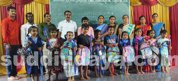 ಬದುಕು ಕಟ್ಟೋಣ ಬನ್ನಿ ತಂಡದ ಸಂಚಾಲಕ ಲಕ್ಷ್ಮೀ ಗ್ರೂಪ್ ಆಫ್ ಇಂಡಸ್ಟ್ರೀಸ್ ಉಜಿರೆ ಇಲ್ಲಿನ ಮಾಲಕ ಮೋಹನ್ ಕುಮಾರ್ ಹಾಗೂ ತಂಡದವರು ಶಾಲೆಗೆ ಆಗಮಿಸಿ 1ರಿಂದ 7 ನೇ ತರಗತಿವರೆಗೆ ಶಾಲಾ ಮಕ್ಕಳಿಗೆ ಉತ್ತಮ ಗುಣಮಟ್ಟದ ಕೊಡೆ ಹಾಗೂ ಬ್ಯಾಗ್ ಗಳನ್ನು ವಿತರಿಸಿದರು. ಪ್ರತಿದಿನ ವಿದ್ಯಾರ್ಥಿಗಳು ಶಾಲೆಗೆ ಹಾಜರಾಗಿ ಚೆನ್ನಾಗಿ ಕಲಿಯಬೇಕೆಂದು ಸಲಹೆ ನೀಡಿದರು.