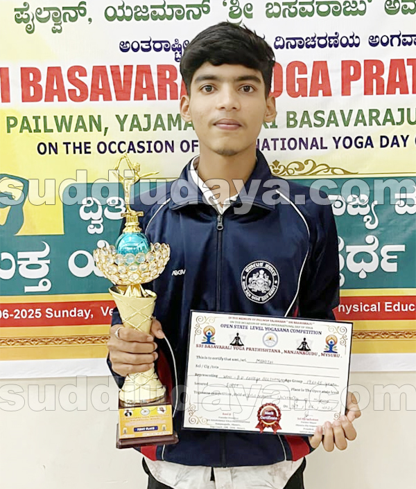 ಬೆಳ್ತಂಗಡಿ: ಶ್ರೀ ಬಸವರಲಿ ಯೋಗ ಪ್ರತಿಷ್ಠಾನ ನಂಜನಗೂಡು ಮೈಸೂರು ಇವರು ಅಂತರಾಷ್ಟ್ರೀಯ ವಿಶ್ವ ಯೋಗ ದಿನಾಚರಣೆಯ ಅಂಗವಾಗಿ ನಡೆಸಿದ ರಾಜ್ಯ ಮಟ್ಟದ ಮುಕ್ತ ಯೋಗಾಸನ ಸ್ಪರ್ಧೆ- 2025 ಇದರಲ್ಲಿ