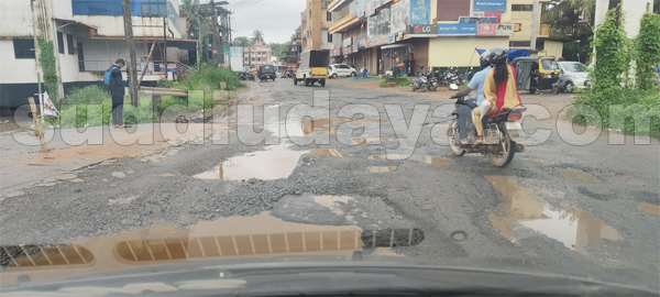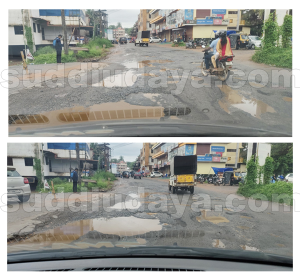 ಗುರುವಾಯನಕೆರೆ: ಇಲ್ಲಿಯ ಕೆರೆಯ ಬಳಿ ಹೆದ್ದಾರಿಯಲ್ಲಿ ಇನ್ನೊಂದು ಕೆರೆ ಸೃಷ್ಟಿಯಾಗಿದೆ. ಭಾರಿ ಗಾತ್ರದ ಹೊಂಡ-ಗುಂಡಿಗಳು ಸೃಷ್ಟಿಯಾಗಿವೆ. ಈ ಮರಣ ಗುಂಡಿಗಳು ಅವಘಡಕ್ಕೆ ಕಾರಣವಾಗುತ್ತಿದ್ದು , ಇದರಿಂದಾಗಿ ವಾಹನ ಚಾಲಕರಿಗೆ ಹಾಗೂ ಪಾದಚಾರಿಗಳಿಗೆ ತೀವ್ರ ಸಂಕಷ್ಟ ಎದುರಾಗಿದೆ.