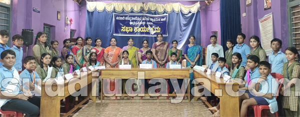 ಹೊಸದಾಗಿ ಆಯ್ಕೆಯಾದ ಶಾಲಾ ವಿದ್ಯಾರ್ಥಿಗಳ ನಾಯಕಿ ಕುಮಾರಿ ಅನನ್ಯ ಮತ್ತು ಉಪ ನಾಯಕ ಕುಮಾರ್ ಸುಹಾಸ್ ಹಾಗೂ ಮಂತ್ರಿಮಂಡಲದ ಸರ್ವ ಸದಸ್ಯರು ಪ್ರಮಾಣವಚನವನ್ನು ಸ್ವೀಕರಿಸಿದರು.