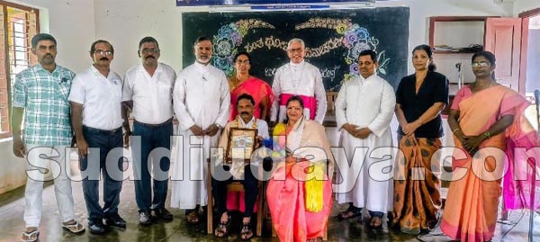 ನೆರಿಯ : ಇಲ್ಲಿಯ ಸಂತ ತೋಮಸ್ ಅನುದಾನಿತ ಪ್ರೌಢಶಾಲೆಯಲ್ಲಿ ಕಳೆದ 43 ವರ್ಷಗಳಿಂದ ಕಚೇರಿ ಸಹಾಯಕರಾಗಿ ಕರ್ತವ್ಯ ನಿರ್ವಹಿಸಿ ಸೇವಾ ನಿವೃತ್ತಿಯನ್ನು ಹೊಂದಿದ ಧರ್ಣಪ್ಪ ಪೂಜಾರಿರವರ ಬಿಳ್ಕೋಡುಗೆ ಸಮಾರಂಭವು ಬೆಳ್ತಂಗಡಿ ಧರ್ಮ ಪ್ರಾಂತ್ಯದ ಪರಮಪೂಜ್ಯ ಲಾರೆನ್ಸ್ ಎಂ ಟಿ ಅವರ ಅಧ್ಯಕ್ಷತೆಯಲ್ಲಿ ಜರಗಿತು.