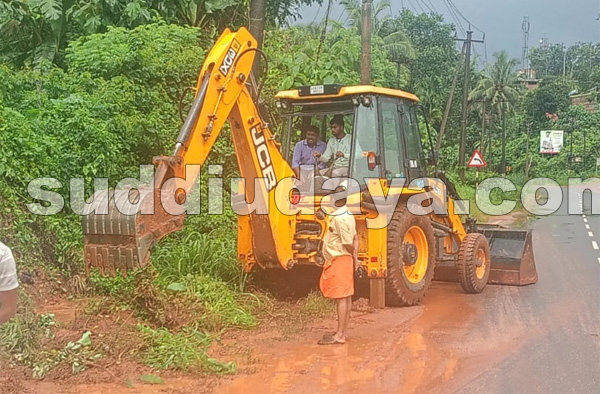 ವೇಣೂರು: ಗರ್ಡಾಡಿಯಿಂದ ವೇಣೂರು ಮುಖ್ಯ ರಸ್ತೆಯಲ್ಲಿ ಮಳೆ ನೀರು ಹರಿದು ವಾಹನ ಸವಾರರಿಗೆ ಆಗುತ್ತಿರುವ ಸಮಸ್ಯೆಯನ್ನು ಶಾಸಕ ಹರೀಶ್ ಪೂಂಜರ ಗಮನಕ್ಕೆ ತಂದಾಗ ಕೂಡಲೇ ಸ್ಪಂದಿಸಿ ಜೆಸಿಬಿ ಹಾಗೂ ಟಿಪ್ಪರ್ ವ್ಯವಸ್ಥೆಯನ್ನು ಮಾಡಿ ಚರಂಡಿ ವ್ಯವಸ್ಥೆಯನ್ನು ಮಾಡಿ ನೀರು ಸರಾಗವಾಗಿ ಹರಿಯುವಂತೆ ಮಾಡಿದರು.