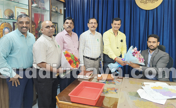 ಬೆಳ್ತಂಗಡಿ: ದ.ಕ. ಜಿ.ಪಂ.ನ ಮುಖ್ಯ ಕಾರ್ಯನಿರ್ವಹಣಾಧಿಕಾರಿಯಾಗಿ ಕರ್ತವ್ಯಕ್ಕೆ ಹಾಜರಾದ ವಿನಾಯಕ್ ಕಾರ್ಬಾರಿ ಅವರನ್ನು ಬೆಳ್ತಂಗಡಿ ತಾಲೂಕು ಪಂಚಾಯತ್ ಇಓ ಭವಾನಿ ಶಂಕರ್ ಎನ್ ಹೂಗುಚ್ಛ ನೀಡಿ ಸ್ವಾಗತಿಸಿದರು.