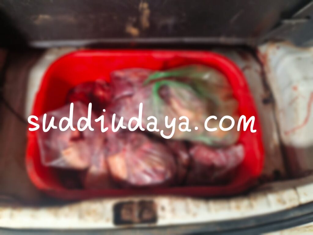 ಗೇರುಕಟ್ಟೆ: ಅಕ್ರಮವಾಗಿ ಕಾಡು ಪ್ರಾಣಿ ಬೇಟೆಯಾಡಿ ಬಂದು ಮನೆಯ ಶೆಡ್ ನಲ್ಲಿ ಮಾಂಸ ಮಾಡಿ ಸಾಗಾಟ ಮಾಡಲು ಯತ್ನಿಸುತ್ತಿದ್ದಾಗ ಖಚಿತ ಮಾಹಿತಿ ಮೇರೆಗೆ ಬೆಳ್ತಂಗಡಿ ಅರಣ್ಯ ಇಲಾಖೆ ದಾಳಿ ಮಾಡಿ ಕಾಡು ಪ್ರಾಣಿ ಮಾಂಸ ಸೇರಿದಂತೆ ಪರಿಕರಗಳನ್ನು ವಶಪಡಿಸಿಕೊಂಡಿದ್ದಾರೆ.