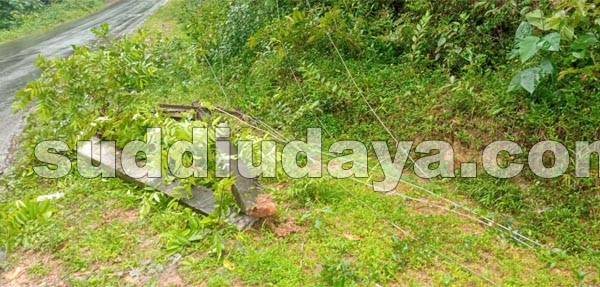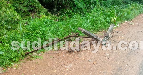 ಕೊಕ್ಕಡ ಚಲಿಸುತ್ತಿದ್ದ ಬಸ್ ಮೇಲೆ ಬಿದ್ದ ವಿದ್ಯುತ್ ಕಂಬ
