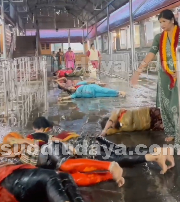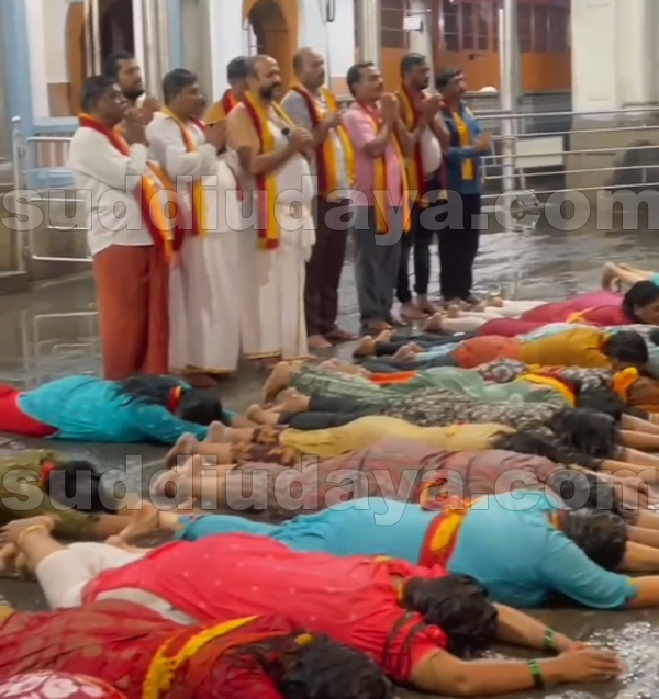 ಸುಮಾರು 40 ಜನ ಮಹಿಳೆಯರು ಬೆಳಗ್ಗೆ ಉರುಳು ಸೇವೆ ಮಾಡಿ ನಂತರ ದೇವರ ದರ್ಶನ ಪಡೆದು ಧರ್ಮಸ್ಥಳದ ವಿರುದ್ಧ ಅಪಪ್ರಚಾರ ಮಾಡುತ್ತಿರುವವರಿಗೆ ಶ್ರೀ ಮಂಜುನಾಥ ಸ್ವಾಮಿ ಸದ್ಭುದ್ಧಿಯನ್ನು ಕೊಡಲಿ ಹಾಗೂ ಸೌಜನ್ಯ ಪ್ರಕರಣ ಶೀಘ್ರ ಇತ್ಯರ್ಥವಾಗಲಿ, ಧರ್ಮಸ್ಥಳಕ್ಕೆ ಅಂಟಿರುವ ಕಂಟಕ ದೂರವಾಗಲಿ ಎಂದು ಕರವೇ ಮಹಿಳಾ ಘಟಕದ ವತಿಯಿಂದ ಶ್ರೀ ಮಂಜುನಾಥ ಸ್ವಾಮಿ ಸನ್ನಿಧಾನದಲ್ಲಿ ಉರುಳು ಸೇವೆ ಸಲ್ಲಿಸಿದರು.