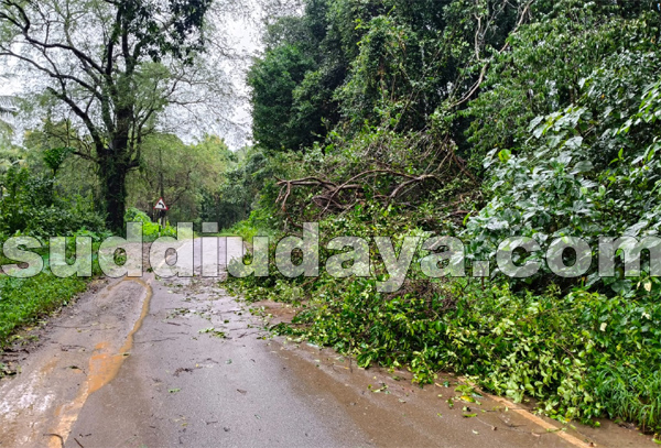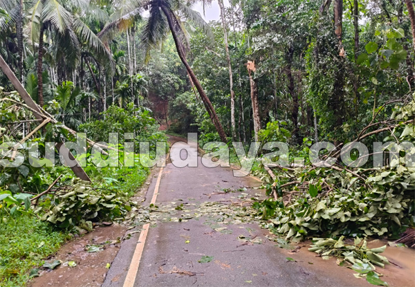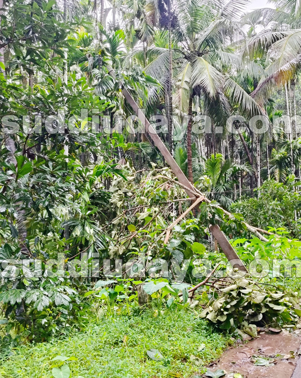 ಭಾರೀ ಗಾಳಿ ಮಳೆ: ಬಾಜಾರು, ಪಿಲಿಗೂಡು, ಸರಳಿಕಟ್ಟೆಯಲ್ಲಿ ರಸ್ತೆಗಳಿಗೆ ಮರ ಬಿದ್ದು ವಿದ್ಯುತ್ ಕಂಬಗಳು ಧರಾಶಾಹಿ
