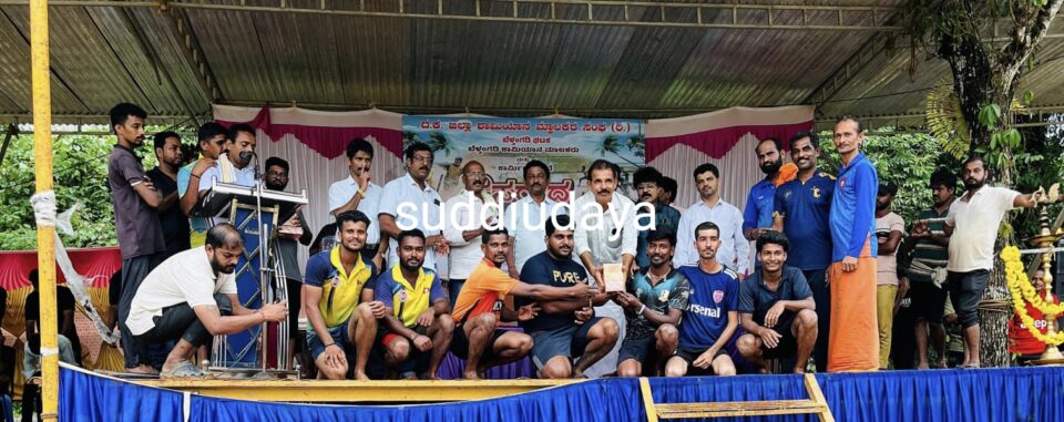 ಬಂದಾರು :ಬೆಳ್ತಂಗಡಿ ತಾಲೂಕು ಶಾಮಿಯಾನ ಮಾಲಕರ ಸಂಘ (ರಿ.) ಹಾಗೂ ದಕ್ಷಿಣ ಕನ್ನಡ ಜಿಲ್ಲಾ ಶಾಮಿಯಾನ ಮಾಲಕರ ಸಂಘ (ರಿ) ಇದರ ಜಂಟಿ ಆಶ್ರಯದಲ್ಲಿ ಜುಲೈ 27 ರಂದು ಗದ್ದೆ ಮನೆ ಪಿಲಿಚಾಮುಂಡಿ ಕಲ್ಲು, ಗುರುವಾಯನಕೆರೆ ಗದ್ದೆಯಲ್ಲಿ ಸಂಘದ ಮಾಲಕರು ಮತ್ತು ಕಾರ್ಮಿಕರಿಗೆ ನಡೆದ ಕೆಸರ್ ದ ಕೂಟ-2025, ವಾಲಿಬಾಲ್ ಪಂದ್ಯಾಟದಲ್ಲಿ ಬಂದಾರು ಗ್ರಾಮ ಮೈರೋಳ್ತಡ್ಕ-ಶಿವನಗರ ಶ್ರೀ ಸದಾಶಿವ ಶಾಮಿಯಾನ ಸರ್ವಿಸಸ್ ತಂಡ ಪ್ರಥಮ ಸ್ಥಾನ ಪಡೆದು ಪ್ರಶಸ್ತಿ ತಣ್ಣದಾಗಿಸಿಕೊಂಡಿತು.
