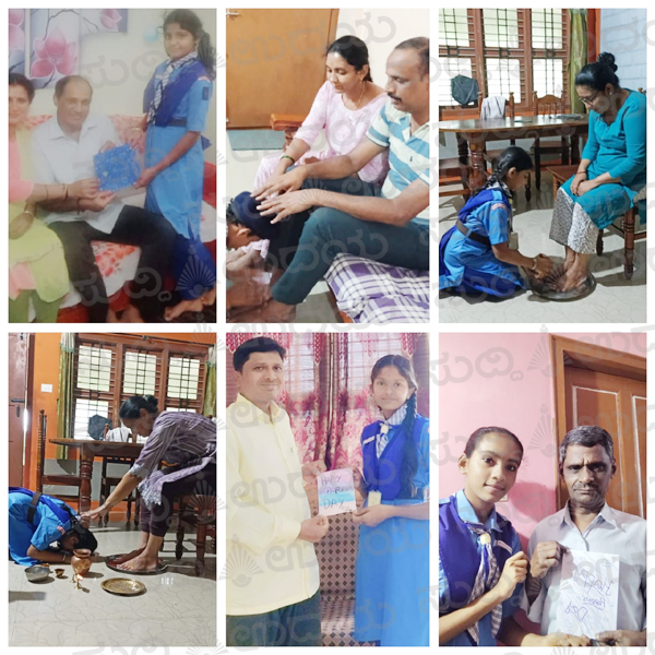 ವಿದ್ಯಾರ್ಥಿಗಳು ತಮ್ಮ ಪೋಷಕರಿಗೆ ಹೂವಿನ ಗುಚ್ಛ ಮತ್ತು ಗ್ರೀಟಿಂಗ್ ಕಾರ್ಡ್ ಕೊಟ್ಟು ಪೋಷಕರ ದಿನಾಚರಣೆಯನ್ನು ಆಚರಿಸಿ ಪೋಷಕರ ಆಶೀರ್ವಾದ ಪಡೆದುಕೊಂಡರು.