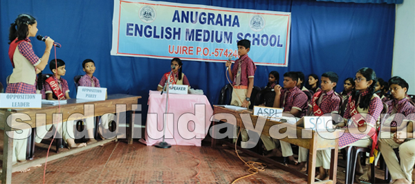 ಉಜಿರೆ : ಅನುಗ್ರಹ ಆಂಗ್ಲ ಮಾಧ್ಯಮ ಶಾಲೆಯ ಹೈಯರ್ ಪ್ರೈಮರಿ ವಿಭಾಗದ ವಿದ್ಯಾರ್ಥಿಗಳು ಅಣಕು ಸಂಸತ್ತು ಅಧಿವೇಶನವನ್ನು ಶಾಲಾ ಸಭಾಂಗಣದಲ್ಲಿ ಯಶಸ್ವಿಯಾಗಿ ನಡೆಸಿದರು.