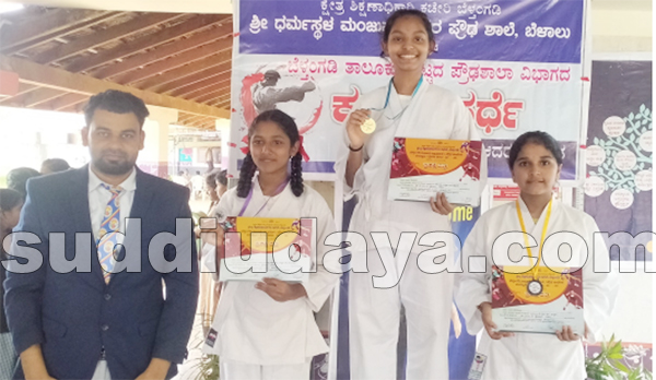 ಬೆಳ್ತಂಗಡಿ : ಶ್ರೀ ಧರ್ಮಸ್ಥಳ ಮಂಜುನಾಥೇಶ್ವರ ಪ್ರೌಢ ಶಾಲೆ ಬೆಳಾಲಿನಲ್ಲಿ ನಡೆದ ಬೆಳ್ತಂಗಡಿ ತಾಲೂಕು ಮಟ್ಟದ ಪ್ರೌಢ ಶಾಲಾ 48 ಕೆಜಿ ವಿಭಾಗದ ಕರಾಟೆ ಪಂದ್ಯಾಟದಲ್ಲಿ ವಾಣಿ ಆಂಗ್ಲ ಮಾಧ್ಯ ಶಾಲೆಯ ವಿದ್ಯಾರ್ಥಿನಿ ಕು. ಸಂಜ್ಞಾ ಪ್ರಥಮ ಸ್ಥಾನ ಪಡೆದು ಜಿಲ್ಲಾ ಮಟ್ಟಕ್ಕೆ ಆಯ್ಕೆಯಾಗಿರುತ್ತಾರೆ.