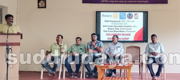 ಉಜಿರೆ : ಎಸ್ ಡಿ ಯಂ ಶಿಕ್ಷಣ ಸಂಸ್ಥೆಗಳ ಅಧ್ಯಕ್ಷರಾದ ವೀರೇಂದ್ರ ಹೆಗ್ಗಡೆಯವರ ಆಶಯದಂತೆ ವಿದ್ಯಾರ್ಥಿಗಳಲ್ಲಿ ಸಾಮಾಜಿಕ ಬದ್ದತೆ ಮತ್ತು ಸಾಮಾಜಿಕ ಕಳಕಳಿ ಭಾವನೆಯನ್ನು ಜಾಗೃತಗೊಳಿಸುವ ಉದ್ದೇಶದಿಂದ ಎಸ್ ಡಿ ಯಂ ಪಾಲಿಟೆಕ್ನಿಕ್ ಯುವ ರೆಡ್ ಕ್ರಾಸ್ ಘಟಕ, ರಾಷ್ಟ್ರೀಯ ಸೇವಾ ಯೋಜನೆಯ ಘಟಕ ಹಾಗೂ ಉಜಿರೆಯ ಶ್ರೀ ಧರ್ಮಸ್ಥಳ ಮಂಜುನಾಥೇಶ್ವರ ಮಲ್ಟಿ ಸ್ಪೆಷಾಲಿಟಿ ಆಸ್ಪತ್ರೆ, ಉಜಿರೆ , ರೋಟರಿ ಕ್ಲಬ್, ಬೆಳ್ತಂಗಡಿ ಇವರ ಜಂಟಿ ಸಹಭಾಗಿತ್ವದೊಂದಿಗೆ ಮಂಗಳೂರಿನ ರೆಡ್ ಕ್ರಾಸ್ ರಕ್ತನಿಧಿ ಘಟಕದಿಂದ ಆ.23 ರಂದು ಸ್ವಯಂ ಪ್ರೇರಿತ ರಕ್ತದಾನ ಶಿಬಿರ ನಡೆಯಿತು.