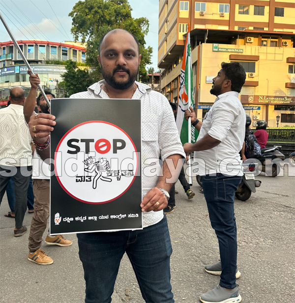 ಯುವ ಕಾಂಗ್ರೆಸ್ ದಕ ಜಿಲ್ಲಾ ಸಮಿತಿಯಿಂದ ಮತಗಳ್ಳತನ ವಿರುದ್ದ ಜನಜಾಗೃತಿ ಹೋರಾಟಕ್ಕೆ ಬೆಂಬಲವಾಗಿ ಮಂಗಳೂರಿನಲ್ಲಿ ಬ್ರಹತ್ ಪಂಜಿನ ಮೆರವಣಿಗೆ