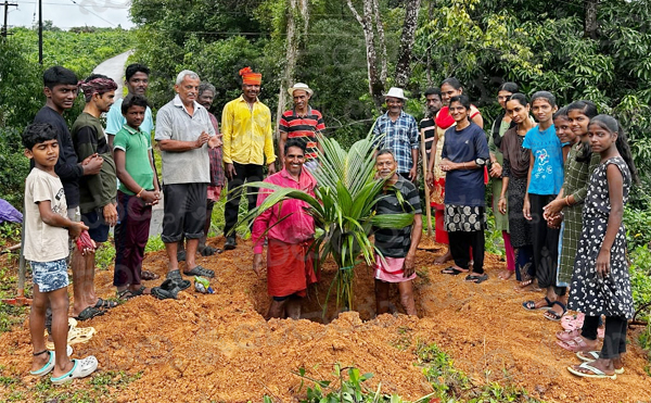 ಹಿರಿಯ ಕೃಷಿಕ ಡೊಂಬಯ್ಯ ಗೌಡರು ತೆಂಗಿನ ಗಿಡ ನೆಡುವ ಮೂಲಕ ಶ್ರಮದಾನ ಉದ್ಘಾಟಿಸಿದರು.