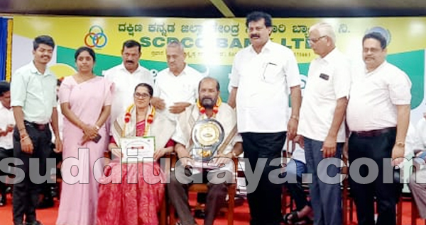 ಎಸ್.ಸಿ.ಡಿ.ಸಿ.ಸಿ ಬ್ಯಾಂಕಿನ ಅಧ್ಯಕ್ಷ ಡಾ.ಎಂ.ಎನ್ ರಾಜೇಂದ್ರ ಕುಮಾರ್ ಅವರು ಗುರುವಾಯನಕೆರೆ ಸೇವಾ ಸಹಕಾರಿ ಸಂಘ ಅಧ್ಯಕ್ಷ ಮುಗಳಿ ನಾರಾಯಣ ಭಟ್ ಹಾಗೂ ಮುಖ್ಯಕಾರ್ಯನಿರ್ವಹಣಾಧಿಕಾರಿ ರವಿಕಲ ಅವರಿಗೆ ಪ್ರಶಸ್ತಿ ನೀಡಿ ಗೌರವಿಸಿದರು.