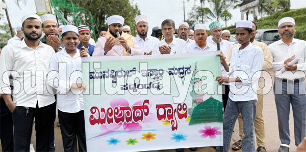 ವೇಣೂರು: ಪಡ್ಡಂದಡ್ಕ ನೂರುಲ್ ಹುಧಾ ಮಸೀದಿಯಿಂದ 1500ನೇ ಈದ್ ಮಿಲಾದ್ ರ್ಯಾಲಿಗೆ ಖತೀಬ್ ಜನಾಬ್ ಕಲಂದರ್ ಶಾಫಿ ಬಾಖವಿ ದುವಾ ಪ್ರಾರ್ಥನೆ ಮಾಡಿ ಚಾಲನೆ ನೀಡಿದರು. ನಂತರ ಮೌಲೂದ್ ಪಾರಾಯಣ ನಡೆಯಿತು.