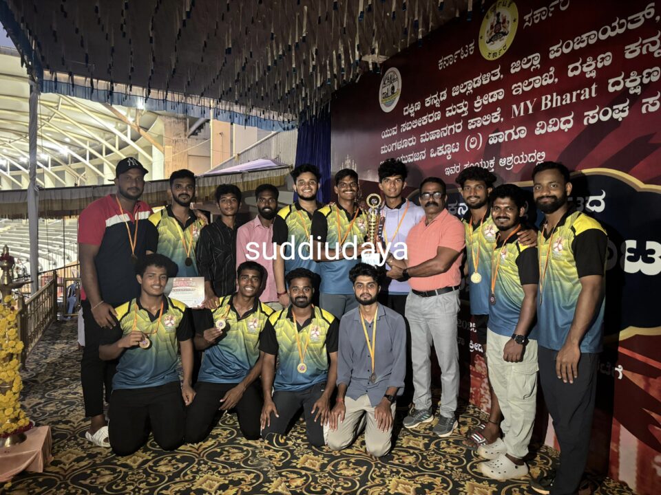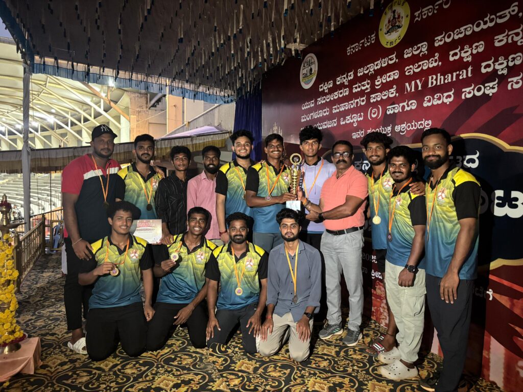 ಬೆಳ್ತಂಗಡಿ : ದಕ್ಷಿಣ ಕನ್ನಡ ಜಿಲ್ಲಾಡಳಿತ, ಜಿಲ್ಲಾ ಪಂಚಾಯತ್. ಯುವ ಸಬಲೀಕರಣ ಮತ್ತು ಕ್ರೀಡಾ ಇಲಾಖೆ ದಕ್ಷಿಣ ಕನ್ನಡ ಜಿಲ್ಲೆ, ಮಂಗಳೂರು ಮಹಾನಗರ ಪಾಲಿಕೆ,MY Bharat ದಕ್ಷಿಣ ಕನ್ನಡ, ಜಿಲ್ಲಾ ಯುವಜನ ಒಕ್ಕೂಟ (ರಿ.)ಹಾಗೂ ವಿವಿಧ ಸಂಘ ಸಂಸ್ಥೆಗಳು ಇವುಗಳ ಸಂಯುಕ್ತ ಆಶ್ರಯದಲ್ಲಿ ಸೆ 07 ರಂದು ಮಂಗಳಾ ಕ್ರೀಡಾಂಗಣ ಮಂಗಳೂರು ನಲ್ಲಿ ನಡೆದ ದಕ್ಷಿಣ ಕನ್ನಡ ಜಿಲ್ಲಾ ಮಟ್ಟದ ದಸರಾ ಕ್ರೀಡಾಕೂಟ 2025-26 ಪುರುಷರ ತ್ರೋಬಾಲ್ ಪಂದ್ಯಾಟದಲ್ಲಿ ಬೆಳ್ತಂಗಡಿ ತಾಲೂಕು ತಂಡ ಪ್ರಥಮ ಸ್ಥಾನ ಪ್ರಶಸ್ತಿ ಪಡೆದು ವಿಭಾಗಮಟ್ಟದ ಪಂದ್ಯಾಟಕ್ಕೆ ಆಯ್ಕೆಯಾಗಿದೆ.