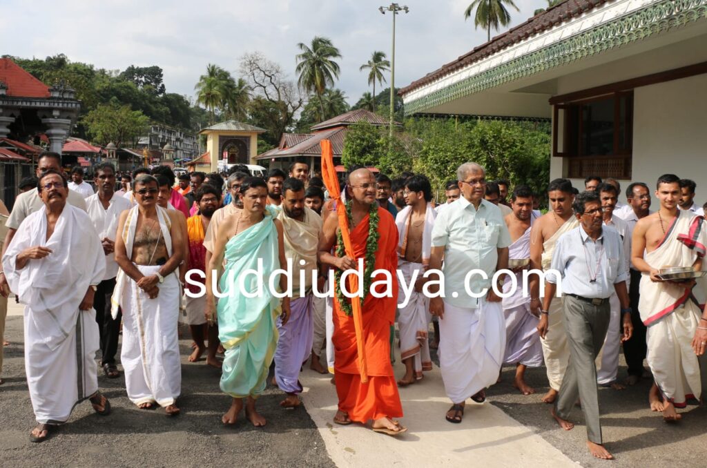 ಮಠದ ವತಿಯಿಂದ ಶಾಲು ಹೊದಿಸಿ, ಗೌರವಿಸಿದರು.ಹೇಮಾವತಿ ವೀ. ಹೆಗ್ಗಡೆ ಹಾಗೂ ಡಿ. ಹರ್ಷೇಂದ್ರ ಕುಮಾರ್ ಅವರಿಗೂ ಸ್ವಾಮೀಜಿಯವರು ಪ್ರಸಾದ ನೀಡಿ ಆಶೀರ್ವದಿಸಿದರು. ಬಳಿಕ ಸ್ವಾಮೀಜಿ ದೇವರದರ್ಶನ ಮಾಡಿ, ವಿಶೇಷ ಸೇವೆ ಸಲ್ಲಿಸಿ ಉಡುಪಿಗೆ ಪ್ರಯಾಣಿಸಿದರು.