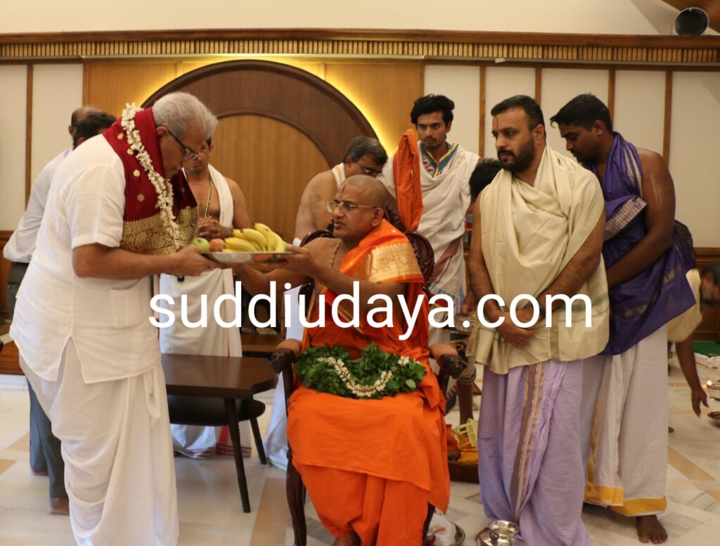 ಬಳಿಕ ಬೀಡಿನಲ್ಲಿ (ಹೆಗ್ಗಡೆಯವರ ನಿವಾಸ) ಪೂಜ್ಯ ಸ್ವಾಮೀಜಿಯವರ ಪಾದಪೂಜೆ ಮಾಡಲಾಯಿತು.ಧರ್ಮಾಧಿಕಾರಿ ಡಿ. ವೀರೇಂದ್ರ ಹೆಗ್ಗಡೆಯವರು ಪೂಜ್ಯ ಸ್ವಾಮೀಜಿಯವರಿಗೆ ತುಳಸಿ ಮಾಲೆ ಹಾಕಿ ಶಾಲು ಹೊದಿಸಿ ಗೌರವಿಸಿದರು.ಪೂಜ್ಯ ಪೇಜಾವರ ಸ್ವಾಮೀಜಿಯವರು ಹೆಗ್ಗಡೆಯವರಿಗೆ ಫಲ ಮಂತ್ರಾಕ್ಷತೆಯೊAದಿಗೆ ಪ್ರಸಾದ ನೀಡಿ ಆಶೀರ್ವದಿಸಿದರು.