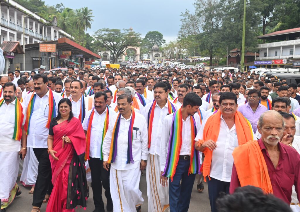 ಉಜಿರೆಯಲ್ಲಿ ಒಟ್ಟು ಸೇರಿ ಧರ್ಮಸ್ಥಳಕ್ಕೆ ಯಾತ್ರೆ ನಡೆಸಿದರು.