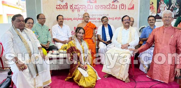 ಮಣಿ ಕೃಷ್ಣಸ್ವಾಮಿ ಅಕಾಡೆಮಿಯ ಗೌರವಾಧ್ಯಕ್ಷ ಡಾ. ಹರಿಕೃಷ್ಣ ಪುನರೂರು ಇವರ ಅಧ್ಯಕ್ಷತೆಯಲ್ಲಿ ನಡೆದ ಸಮಾರಂಭದಲ್ಲಿ ನವೀಕರಣ ಕಾರ್ಯಕ್ಕೆ ವಿಶೇಷ ನೆರವು ನೀಡಿದ ಡಿ. ಅಣ್ಣು ದೇವಾಡಿಗ ,ಕರ್ನಾಟಕ ರಾಜ್ಯೋತ್ಸವ ಪ್ರಶಸ್ತಿ ಪುರಸ್ಕೃತ ಬಿ. ಸೀತಾರಾಮ ತೋಳ್ಪಾಡಿತ್ತಾಯ ಹಾಗೂ ಭರತನಾಟ್ಯದಲ್ಲಿ ವಿಶೇಷ ಸಾಧನೆ ಮಾಡಿದ ರೆಮೋನಾ ಇವರನ್ನು ಸನ್ಮಾನಿಸಲಾಯಿತು.