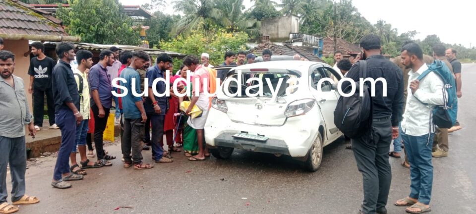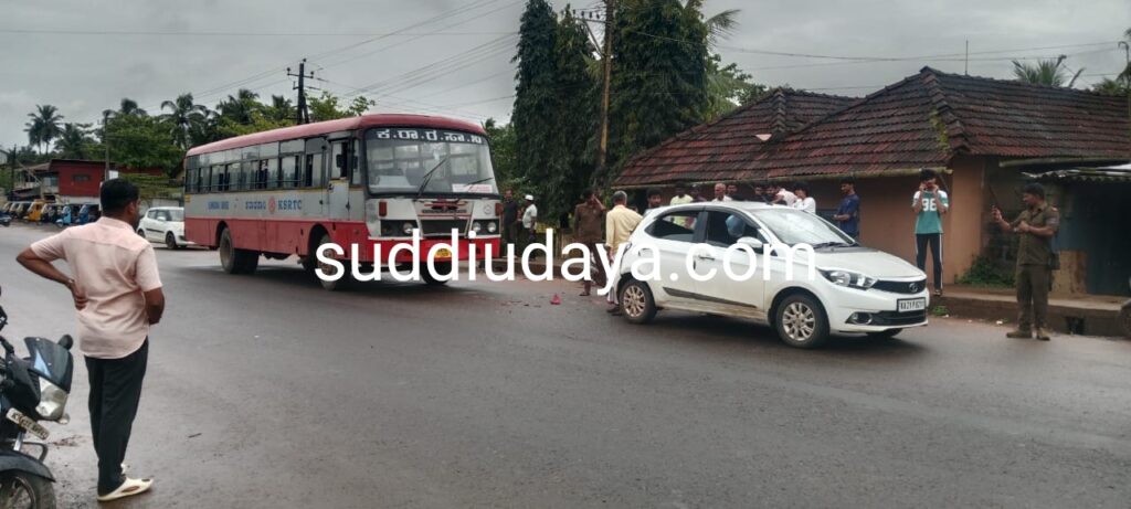 ಬೆಳ್ತಂಗಡಿ ಕಡೆಯಿಂದ ಮoಗಳೂರಿಗೆ ಸಾಗುತ್ತಿದ್ದ ಎದುರಿನಲ್ಲಿ ಚಲಿಸುತ್ತಿದ್ದ ಕಾರಿಗೆ ನಾಯಿ ಅಡ್ಡ ಬoದ ಕಾರಣ ಚಾಲಕ ಬ್ರೇಕ್ ಹಾಕಿದಾಗ ಹಿoದಿನಿoದ ಬರುತ್ತಿದ್ದ ಕಾರು ನಿಲ್ಲಿಸಿದಾಗ ಅದರ ಹಿಂದಿನಿoದ ಬರುತ್ತಿದ್ದ ಕೆ.ಎಸ್.ಆರ್.ಟಿ.ಸಿ ಚಿಕ್ಕಮಗಳೂರು ಮoಗಳೂರು ಎಕ್ಸ್ ಪ್ರೆಸ್ ಬಸ್ ಕಾರಿಗೆ ಡಿಕ್ಕಿ ಹೊಡೆದು ಕಾರು ಜಖo ಗೊoಡಿದೆ ಪ್ರಯಾಣಿಕರು ಅಪಾಯದಿಂದ ಪಾರಾಗಿದ್ದಾರೆ.