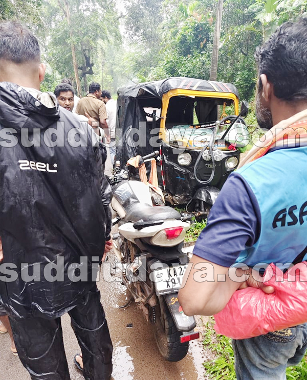 ಅರಸಿನಮಕ್ಕಿ: ಉಪರಡ್ಕದಲ್ಲಿ ಆಟೋ ರಿಕ್ಷಾ ಹಾಗೂ ಬೈಕ್ ಡಿಕ್ಕಿ