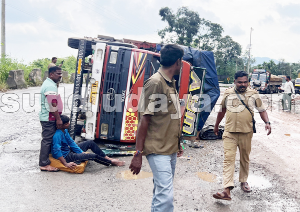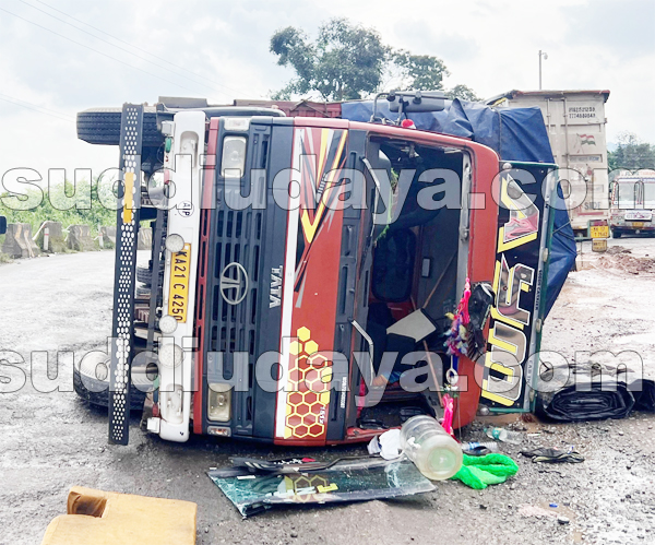 ರೆಖ್ಯ: ರಾಷ್ಟ್ರೀಯ ಹೆದ್ದಾರಿ 75ರ ಪರಕ್ಕಳ ಎಂಬಲ್ಲಿ ಮಂಗಳೂರಿನಿಂದ ಬೆಂಗಳೂರು ಕಡೆಗೆ ಫ್ಲೈವುಡ್ ಸಾಗಾಟ ಮಾಡುತ್ತಿದ್ದ ಲಾರಿ ಪಲ್ಟಿಯಾಗಿದ್ದು ಚಾಲಕ ಮತ್ತು ನಿರ್ವಾಹಕರಿಬ್ಬರಿಗೂ ಗಾಯಗಳಾಗಿದೆ. ತಕ್ಷಣ ಅವರನ್ನು ಆಸ್ಪತ್ರೆಗೆ ದಾಖಲಿಸಲಾಗಿದೆ.
