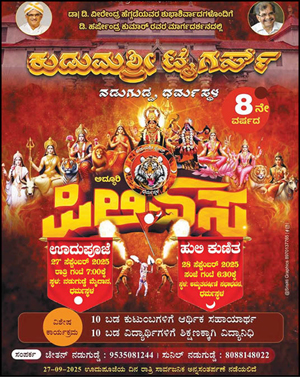 ಧರ್ಮಸ್ಥಳ: ಕುಡುಮಶ್ರೀ ಟೈಗರ್ಸ್ ನಿಂದ 8ನೇ ವರ್ಷದ ಅದ್ದೂರಿಯ ಪಿಲಿಏಸ, ಊದುಪೂಜೆ, ಹುಲಿಕುಣಿತ, ವೈಭವದ ಮೆರವಣಿಗೆಯು ಸೆ. 27-29 ರವರೆಗೆ ನಡೆಯಲಿದೆ.