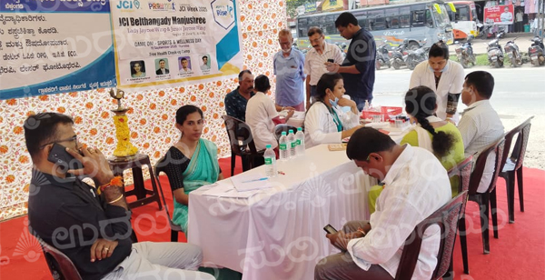 ಬೆಳ್ತಂಗಡಿ : ಜೆಸಿಐ ಬೆಳ್ತಂಗಡಿ ಇದರ ಜೇಸಿ ಸಪ್ತಾಹದ ಅಂಗವಾಗಿ ಶ್ರೀ ಗಣೇಶ್ ವೈದ್ಯಕೀಯ ಮತ್ತು ಅಪಘಾತ ಚಿಕಿತ್ಸಾ ಕೇಂದ್ರ ಇದರ ಸಹಭಾಗಿತ್ವದಲ್ಲಿ ಉಚಿತ ಆರೋಗ್ಯ ತಪಾಸಣಾ ಶಿಬಿರವು ಬೆಳ್ತಂಗಡಿಯ ಬಸ್ ನಿಲ್ದಾಣದಲ್ಲಿ ನಡೆಯಿತು.