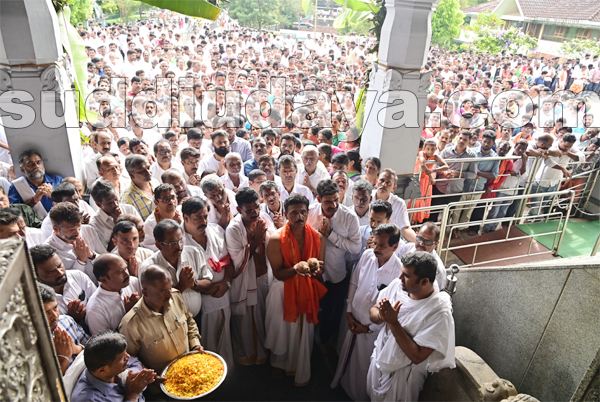 ಮಂಜುನಾಥನ ಸನ್ನಿಧಿ ಮುಂದೆ ತೆಂಗಿನ ಕಾಯಿ ಒಡೆದು ಪ್ರಾರ್ಥನೆ ಸಲ್ಲಿಸಿದ ಭಕ್ತರು ಮೆರವಣಿಗೆ ಮೂಲಕ ಅಣ್ಣಪ್ಪ ಸ್ವಾಮಿ ಬೆಟ್ಟಕ್ಕೆ ಸಾಗಿ ಅಲ್ಲಿಯೂ ಪ್ರಾರ್ಥನೆ ಸಲ್ಲಿಸಿದರು. ಈ ಕಾರ್ಯಕ್ರಮದಲ್ಲಿ ಅನೇಕ ಸಂಖ್ಯೆಯಲ್ಲಿ ಮಹಿಳಾ ಭಕ್ತಾದಿಗಳು ಸೇರಿದ್ದರು. ನಂತರ ಮೆರವಣಿಗೆ ಅಮೃತವರ್ಷಿಣಿಗೆ ಸಾಗಿ ಸಹಸ್ರ ಲಲಿತಾ ಪಂಚಾಕ್ಷರಿ ನಾಮ ಪಠಣ ಸಲ್ಲಿಸಲಾಯಿತು.