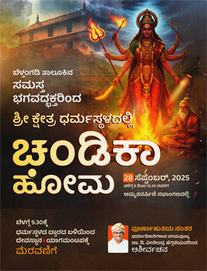 ಶ್ರೀ ಚಂಡಿಕಾಯಾಗಕ್ಕೆ ತಾಲೂಕಿನ ಎಲ್ಲಾ ಗ್ರಾಮಗಳ ವತಿಯಿಂದ ಸಮರ್ಪಿಸಲ್ಪಡುವ ಫಲ-ಪುಷ್ಪಗಳ ಸಮರ್ಪಣೆಯ ಮೆರವಣಿಗೆ ಪೂರ್ವಾಹ್ನ 9-45ಕ್ಕೆ ಶ್ರೀ ಕ್ಷೇತ್ರದ ಮಹಾದ್ವಾರದಿಂದ ಪ್ರಾರಂಭಗೊಂಡು, ಯಾಗ ಮಂಟಪವುಳ್ಳ ಅಮೃತವರ್ಷಿಣಿ ಸಭಾಂಗಣದವರೆಗೆ ನಡೆಯಲಿದೆ. 10-30ಕ್ಕೆ ಸರಿಯಾಗಿ ಧರ್ಮಾಧಿಕಾರಿಗಳ ಉಪಸ್ಥಿತಿಯಲ್ಲಿ ಯಾಗದ ಪೂರ್ಣಾಹುತಿಯು ವೇದ ವಿದ್ವಜ್ಜನರ ಮೂಲಕ ನಡೆಯಲಿದೆ. ಪೂರ್ವಾಹ್ನ 11-00 ಗಂಟೆಗೆ ಸರಿಯಾಗಿ ‘ಸತ್ಯದರ್ಶನ’ ಸಮಾವೇಶ ನಡೆಯಲಿದ್ದು, ಹೆಗ್ಗಡೆಯವರು ತಾಲೂಕಿನ ಜನತೆಗೆ ಆಶೀರ್ವಚನಪೂರಕವಾದ ಸಂದೇಶವನ್ನು ನೀಡಲಿದ್ದಾರೆ.