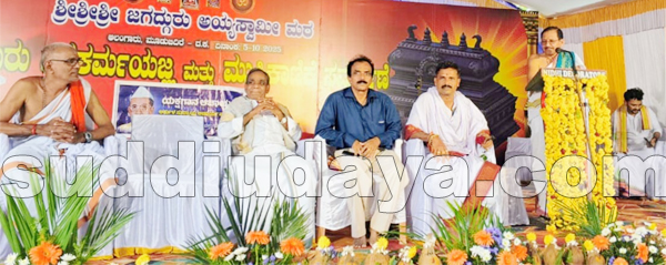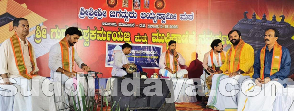 ಗೇರುಕಟ್ಟೆ: ಶ್ರೀ ಜಗದ್ಗುರು ಅಯ್ಯ ಸ್ವಾಮಿ ಮಠ ಆಲoಗಾರು ಮೂಡಬಿದಿರೆ ಪುನರ್ ನಿರ್ಮಾಣ ಜೀರ್ಣೋದ್ಧಾರದ ಪ್ರಯುಕ್ತ ನಡೆದ ಶ್ರೀ ಗುರು ಮತ್ತು ವಿಶ್ವಕರ್ಮ ಯಜ್ಞದ ಶುಭಾವಸರದಲ್ಲಿ ಅಲಂಗಾರಿನ ಪಾಲ್ಕೆ ಬಾಬುರಾಯ ಆಚಾರ್ಯ ವೇದಿಕೆಯಲ್ಲಿ ಗೇರುಕಟ್ಟೆಯ ಅರ್ಕುಳ ಸುಬ್ರಾಯ ಆಚಾರ್ಯ ಪ್ರತಿಷ್ಠಾನದಿಂದ ಕರ್ನಾಟಕ ರಾಜ್ಯೋತ್ಸವ ಪ್ರಶಸ್ತಿ ಪುರಸ್ಕೃತ ಬಡಗುತಿಟ್ಟಿನ ಪ್ರಸಿದ್ಧ ಕಲಾವಿದ ತೀರ್ಥಹಳ್ಳಿ ಗೋಪಾಲ ಆಚಾರ್ಯ ಇವರಿಗೆ ಅರ್ಕುಳ ಪ್ರಶಸ್ತಿ ಪ್ರಧಾನ ಮಾಡಲಾಯಿತು.