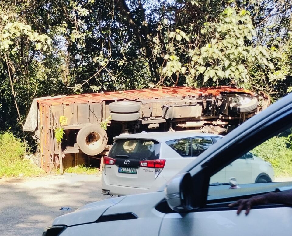 ಚಾರ್ಮಾಡಿ: ಚಿಕ್ಕಮಗಳೂರು ಮತ್ತು ದಕ್ಷಿಣ ಕನ್ನಡ ಜಿಲ್ಲೆಗಳನ್ನು ಸಂಪರ್ಕಿಸುವ ಪ್ರಸಿದ್ಧ ಚಾರ್ಮಾಡಿ ಘಾಟ್ ರಸ್ತೆಯಲ್ಲಿ ಲಾರಿ ಪಲ್ಟಿಯಾದ ಘಟನೆ ನಡೆದಿದೆ.