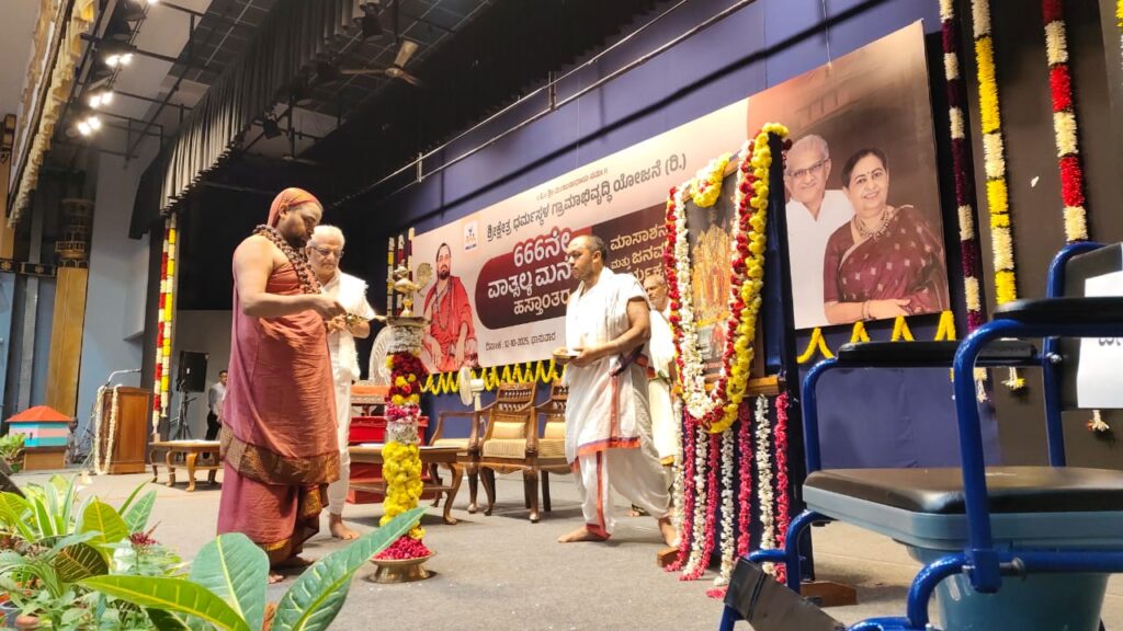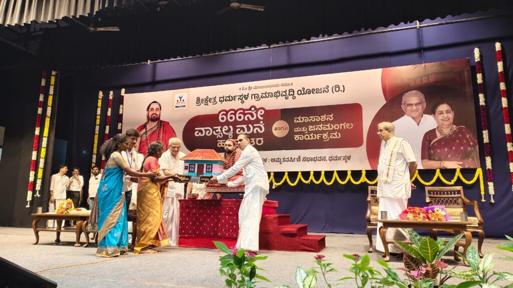 ಧರ್ಮಸ್ಥಳ: ಶ್ರೀ ಕ್ಷೇ ಧರ್ಮಸ್ಥಳ ಗ್ರಾಮಾಭಿವೃದ್ದಿ ಯೋಜನೆಯಿಂದ 666ನೇ ವಾತ್ಸಲ್ಯ ಮನೆ ಹಸ್ತಾಂತರ ಹಾಗೂ ಮಾಸಾಶನ ಜನಮಂಗಳ ಕಾರ್ಯಕ್ರಮವು ಅಮೃತವರ್ಷಿಣಿ ಸಭಾಭವನದಲ್ಲಿ ಅ.12 ರಂದು ನಡೆಯಿತು.