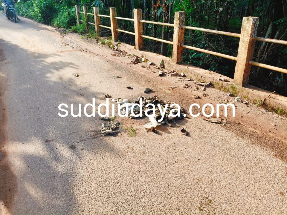 ಬಾರ್ಯ: ಇಲ್ಲಿಯ ಬನ್ನೆoಗಳ ಸೇತುವೆ ಮೇಲೆ ಯಾರೋ ಕಿಡಿಗೇಡಿಗಳು ಯಾವುದೋ ಪ್ರಾಣಿಯ ತ್ಯಾಜ್ಯವನ್ನು ಎಸೆದು ಹಾಕಿ ವಿಕೃತಿ ಮೆರೆದ ಘಟನೆ ನಿನ್ನೆ (ಅ.29)ಮಧ್ಯರಾತ್ರಿ ನಡೆದಿದೆ.