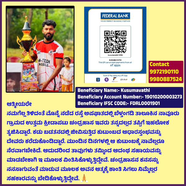 ಅಪಘಾತದಲ್ಲಿ ಮೃತರಾದ ನಾವೂರು ಚಂದ್ರಹಾಸ ರವರ ಕುಟುಂಬಕ್ಕೆ ನೆರವಾಗುವಂತೆ ಮನವಿ