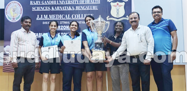 ಉಜಿರೆ: ರಾಜೀವ್ ಗಾಂಧಿ ಆರೋಗ್ಯ ವಿಜ್ಞಾನಗಳ ವಿಶ್ವವಿದ್ಯಾಲಯ ಹಾಗೂ ಜೆ.ಜೆ. ಮೆಡಿಕಲ್ ಕಾಲೇಜ್, ದಾವಣಗೆರೆ ಇವರ ಆಶ್ರಯದಲ್ಲಿ ನಡೆದ ಅಂತರ್ವಲಯ ಮಟ್ಟದ ಮಹಿಳೆಯರ ಟೇಬಲ್ ಟೆನ್ನಿಸ್ ಪಂದ್ಯಾವಳಿಯಲ್ಲಿ ಉಜಿರೆಯ ಶ್ರೀ ಧರ್ಮಸ್ಥಳ ಮಂಜುನಾಥೇಶ್ವರ ಪ್ರಕೃತಿ ಚಿಕಿತ್ಸೆ ಮತ್ತು ಯೋಗ ವಿಜ್ಞಾನಗಳ ಮಹಾವಿದ್ಯಾಲಯದ ತಂಡವು ಅತ್ಯುತ್ತಮ ಪ್ರದರ್ಶನ ನೀಡಿ ಚಾಂಪಿಯನ್ ಪಟ್ಟ ಕೈಸೇರಿಸಿಕೊಂಡಿದೆ.