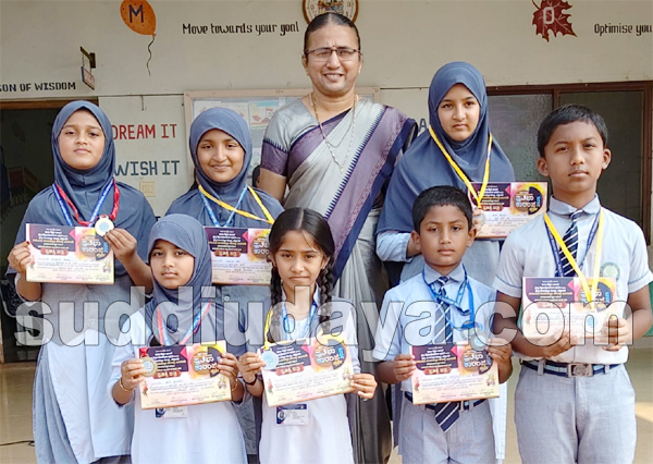 ಬೆಳ್ತಂಗಡಿ: ನಡ ಸರಕಾರಿ ಕಿರಿಯ ಪ್ರಾಥಮಿಕ ಶಾಲೆಯಲ್ಲಿ ನ.೧೨ರಂದು ನಡೆದ ಬಂಗಾಡಿ ವಲಯ ಮಟ್ಟದ ಪ್ರತಿಭಾ ಕಾರಂಜಿ ಸ್ಪರ್ಧೆಯಲ್ಲಿ ಸ್ಟಾರ್ಲೈನ್ ಆಂಗ್ಲ ಮಾಧ್ಯಮ ಶಾಲೆ ರಝಾ ಗಾರ್ಡನ್ನ ವಿದ್ಯಾರ್ಥಿಗಳಾದ 6ನೇ ತರಗತಿಯ ಫಾತಿಮತ್ ಝಿಯ ಅರಬಿಕ್ ಪಠಣ ವಿಭಾಗದ ಸ್ಪರ್ಧೆಯಲ್ಲಿ ಪ್ರಥಮ, 4ನೇ ತರಗತಿಯ ಹನ ಫಾತಿಮಾ ಅರಬಿಕ್ ಪಠಣ ವಿಭಾಗದಲ್ಲಿ ಪ್ರಥಮ, 6ನೇ ತರಗತಿಯ ಆಫೀಫಾ ಸನಾ ಇಂಗ್ಲಿಷ್ ಕಂಠಪಾಠದಲ್ಲಿ ದ್ವಿತೀಯ, 7ನೇ ತರಗತಿಯ ರಿಯಾ ಫಾತಿಮಾ ಹಿಂದಿ ಕಂಠಪಾಠದಲ್ಲಿ ದ್ವಿತೀಯ, 7ನೇ ತರಗತಿಯ ಮೊಹಮ್ಮದ್ ಮಾಝಿನ್ ಕನ್ನಡ ಕಂಠಪಾಠದಲ್ಲಿ ದ್ವಿತೀಯ, 4ನೇ ತರಗತಿಯ ನಿಹಾರಿಕ ಭಗವದ್ಗೀತಾ ಪಠಣದಲ್ಲಿ ದ್ವಿತೀಯ ಸ್ಥಾನವನ್ನು ಪಡೆದು ತಾಲೂಕು ಮಟ್ಟಕ್ಕೆ ಆಯ್ಕೆಯಾಗಿರುತ್ತಾರೆ ಹಾಗೂ 2ನೇ ತರಗತಿಯ ಮೊಹಮ್ಮದ್ ಶಮ್ಮಾಝ್ ಇಂಗ್ಲಿಷ್ ಕಂಠ ಪಾಠದಲ್ಲಿ ತೃತೀಯ ಸ್ಥಾನವನ್ನು ಪಡೆದಿರುತ್ತಾರೆ.