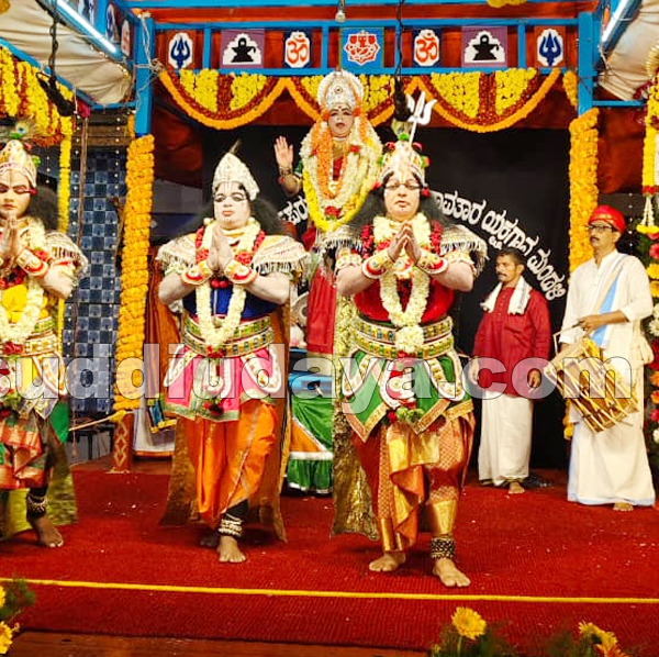 ಅಳದಂಗಡಿ: ಕಟೀಲು ಶ್ರೀ ದುರ್ಗಾಪರಮೇಶ್ವರೀ ಪ್ರಸಾದಿತ ದಶಾವತಾರ ಯಕ್ಷಗಾನ ಮಂಡಳಿಯಿಂದ ಅಳದಂಗಡಿ ಶ್ರೀದೇವಿ ನಿಲಯ ಪಾಲಬೆ ಮನೆಯ ಅಂಗಳದಲ್ಲಿ ಹಾಕಿರುವ ಭವ್ಯ ರಂಗಮಂಟಪದಲ್ಲಿ ನ.23ರಂದು ಸಂಜೆ ಶ್ರೀದೇವಿ ಮಹಾತ್ಮೆ ಯಕ್ಷಗಾನ ನಡೆಯಿತು.