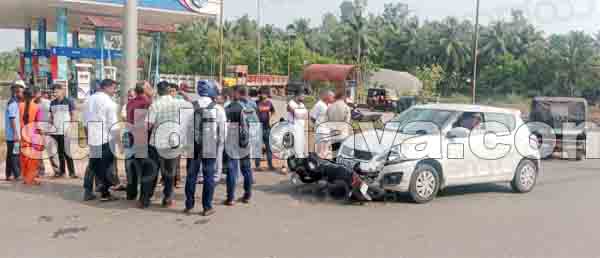 ಮಾಲಾಡಿ : ಕೊಲ್ಪದಬೈಲು ಪೆಟ್ರೋಲ್ ಪಂಪ್ ಎದುರು ಕಾರು ಮತ್ತು ಬೈಕ್ ನಡುವೆ ಅಪಘಾತ ನಡೆದ ಘಟನೆ ನ. 28 ರoದು ಬೆಳಿಗ್ಗೆ ನಡೆದಿದೆ.