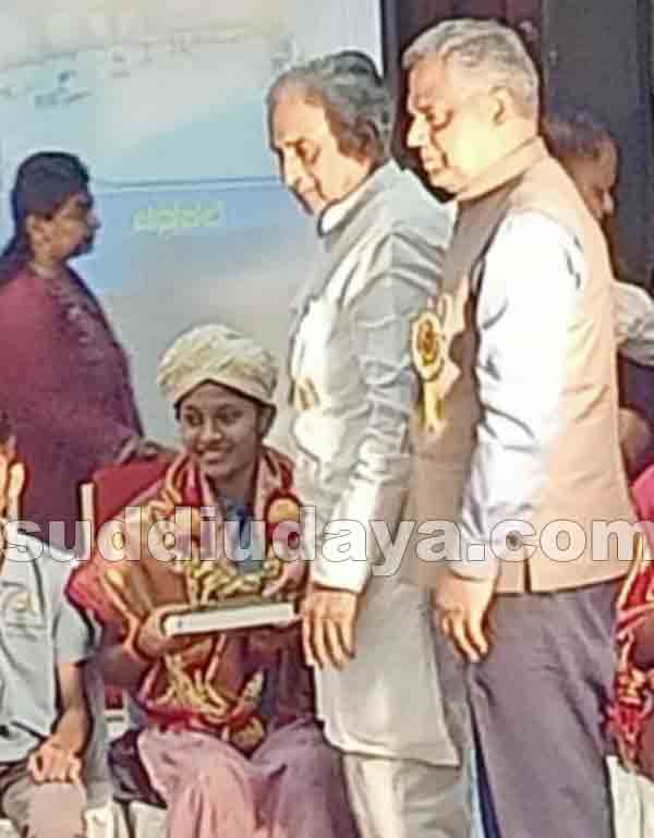 ಬೆಳ್ತಂಗಡಿ: ಗದಗ ಜಿಲ್ಲೆಯ ಲಕ್ಕುಂಡಿಯಲ್ಲಿ ನಡೆದ ರಾಜ್ಯಮಟ್ಟದ ಭಾಷಣ ಸ್ಪರ್ಧೆಯಲ್ಲಿ ಪ್ರಥಮ ಸ್ಥಾನ ಪಡೆದ ಸರಕಾರಿ ಪ.ಪೂ. ಕಾಲೇಜು (ಪ್ರೌಢಶಾಲಾ ವಿಭಾಗ) ವೇಣೂರಿನ 9ನೇ ತರಗತಿಯ ವಿದ್ಯಾರ್ಥಿನಿ ಧನುಶ್ರೀ ಎಸ್. ಕುಲಾಲ್ ಅವರಿಗೆ ಕರ್ನಾಟಕ ರಾಜ್ಯ ವಿಧಾನಪರಿಷತ್ತಿನ ಸಭಾಪತಿ ಬಸವರಾಜ ಹೊರಟ್ಟಿ ಅವರು ಪ್ರಶಸ್ತಿ ಪ್ರದಾನ ಮಾಡಿದರು.