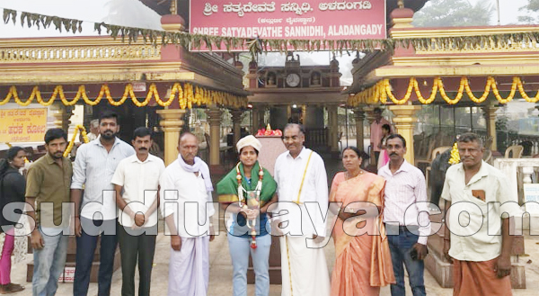 ಅಳದಂಗಡಿ ಶ್ರೀ ಸತ್ಯದೇವತಾ ದೈವಸ್ಥಾನಕ್ಕೆ ಕಬಡ್ಡಿಯಲ್ಲಿ ವಿಶ್ವಕಪ್ ಗೆದ್ದ ಧನಲಕ್ಷ್ಮೀ ಪೂಜಾರಿ ಡಿ.2ರಂದು ಭೇಟಿ ನೀಡಿದರು.